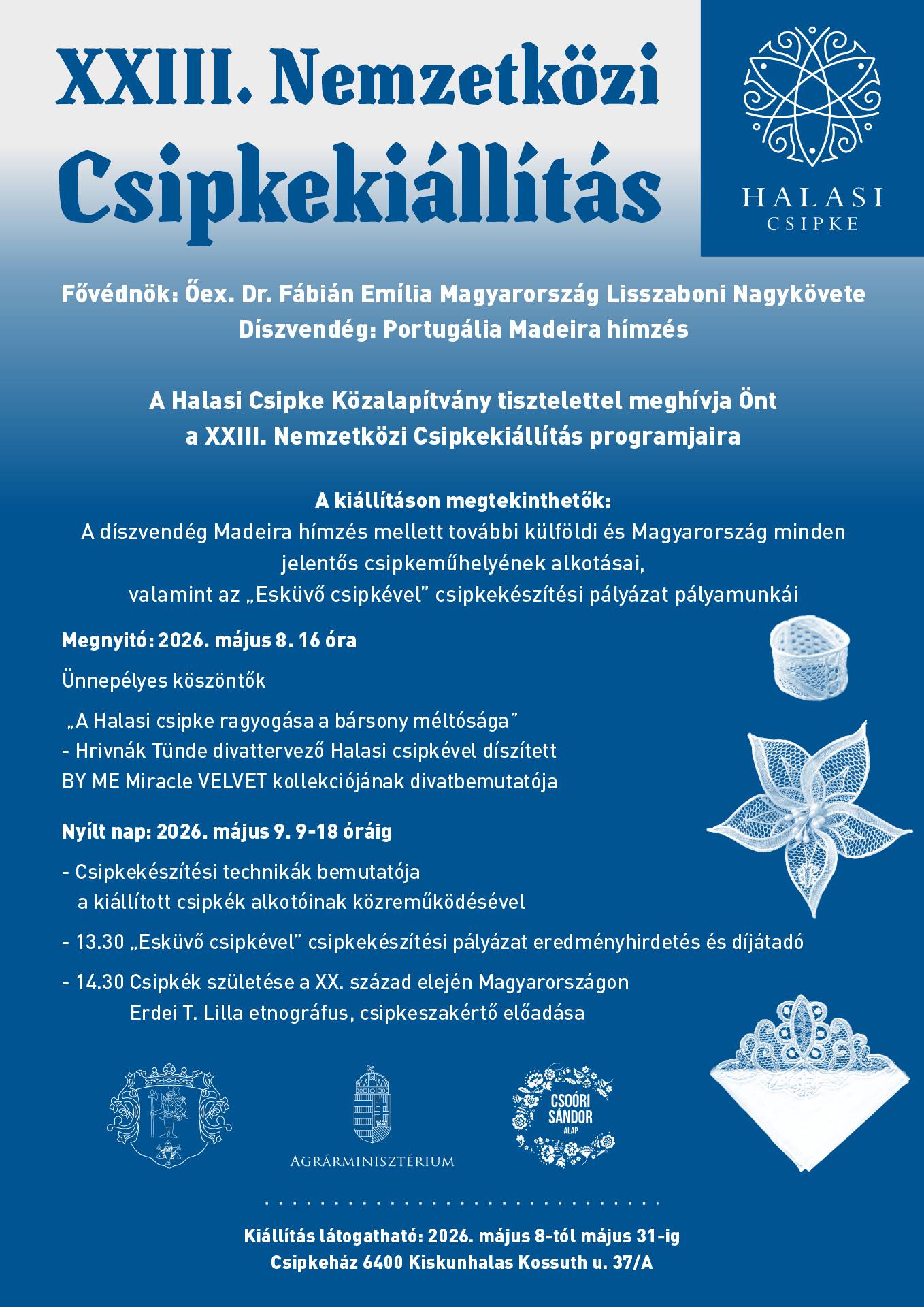 A Halasi Csipke Közalapítvány tisztelettel meghívja Önt